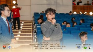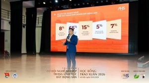 Trong khuôn khổ chương trình, các diễn giả đến từ AHS đã chia sẻ nhiều phân tích và kinh nghiệm thực tế xoay quanh chủ đề “Tiềm năng và Xu hướng thị trường Bất động sản 2026”. Những câu chuyện từ thị trường, từ hành trình làm nghề đã giúp sinh viên hiểu rõ hơn về bức tranh phát triển của ngành, đồng thời định hình tư duy và hành trang cần thiết cho con đường sự nghiệp phía trước.